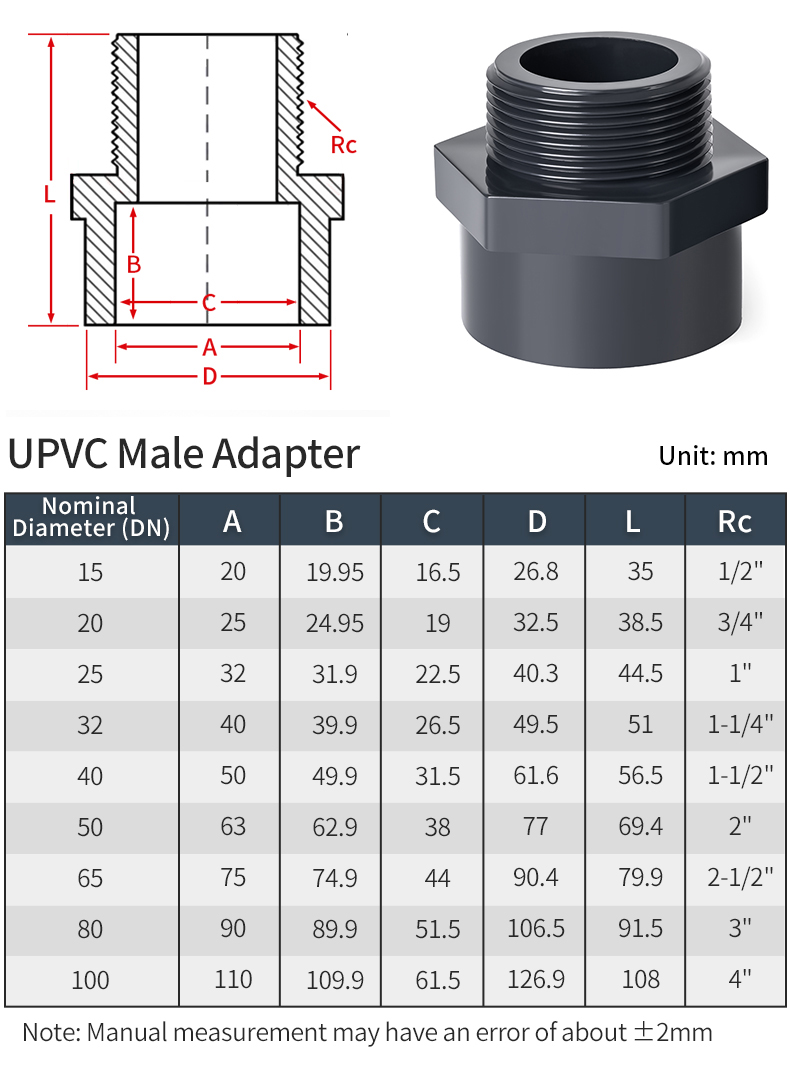 محول ذكر تركيب الأنابيب البلاستيكية هو موصل خيطي من طرف واحد بواسطة المقبس ونهاية أخرى من الخيط الذكري، نهاية المقبس مصنوعة وفقًا لمعايير DIN، ونهاية المسمار الذكور وفقًا لمعايير BSPT. الغرض الرئيسي من استخدام UPVC Pipe Fitting PN16 هو توصيل الصمامات والأدوات والمعدات والملحقات الأخرى بنظام تركيب PVC . .